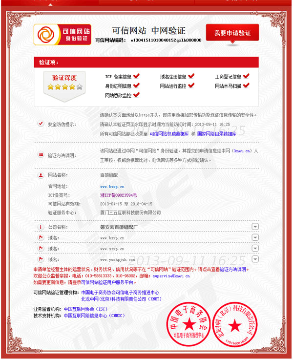 可信任网站认证是由 中国电子商务协会可信电子商务推进中心和北龙中网(北京)科技有限责任公司(KNET)共同认证。